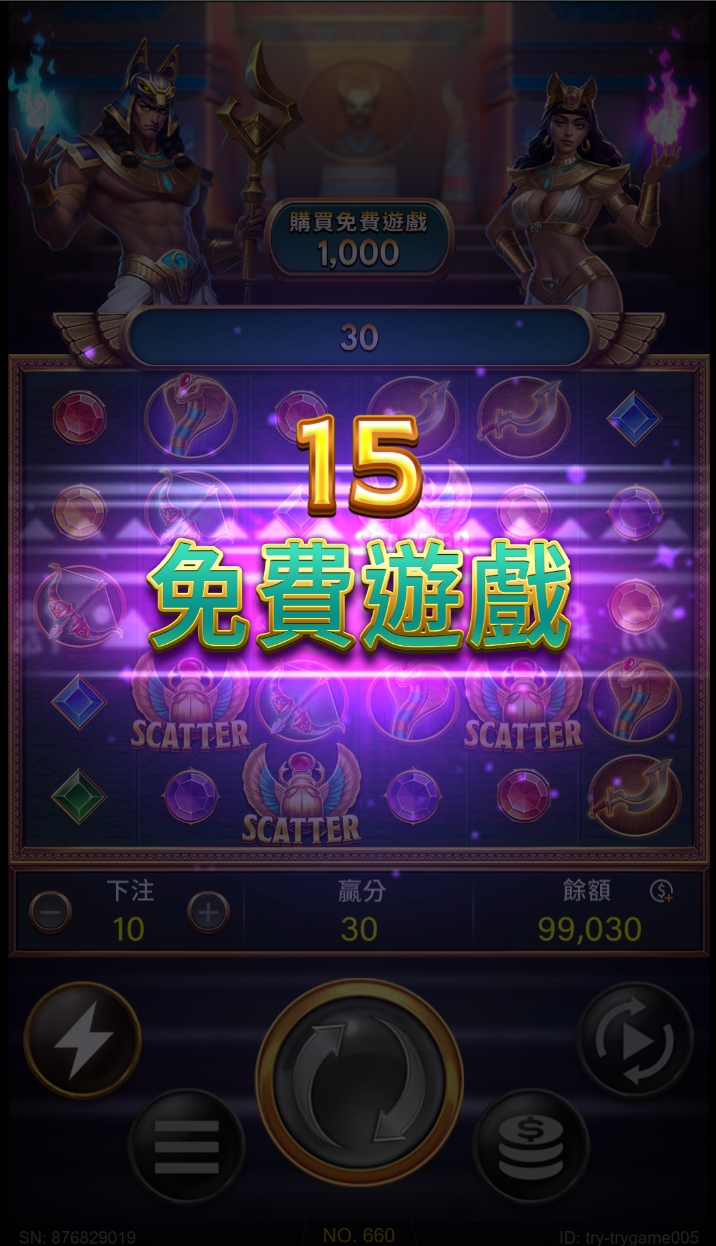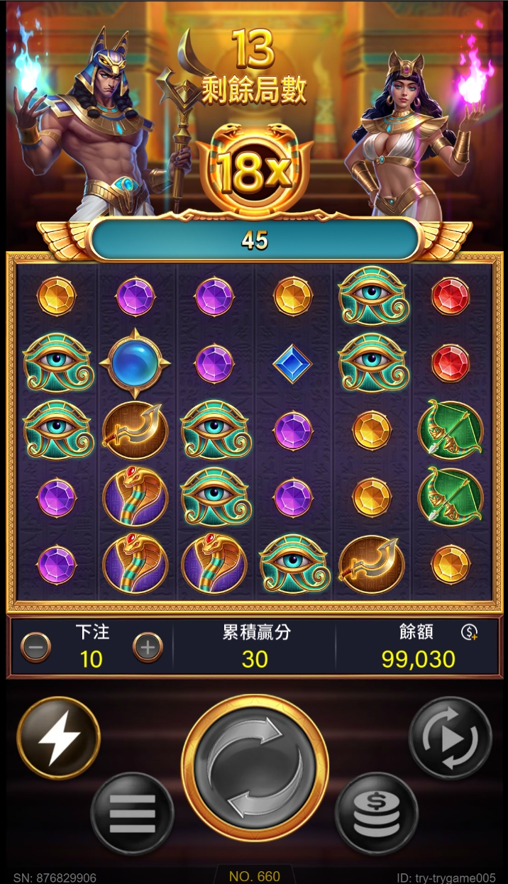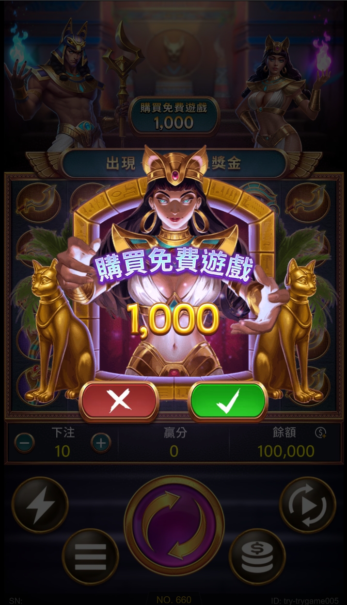 若玩家不想等待觸發,也可直接使用「購買功能」,以指定押注金額購買免費遊戲,立即進入獎勵模式搶分。有機會在一輪中獲得 最高 X500 倍 的神祇賞賜,迅速累積財富。整體遊戲節奏輕快、畫風神秘古典,搭配流暢系統與跨平台支援(含 Android、iOS、Windows、HTML5),是款兼具娛樂與獲利潛力的優質機台。