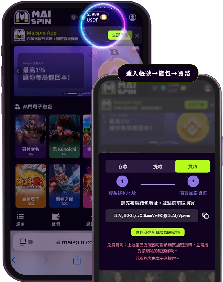 - 本平台僅提供儲值地址,購幣與付款流程由MoonPay負責。