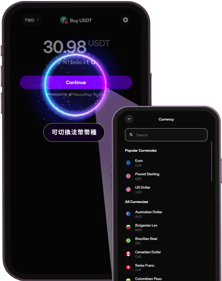 - MoonPay 為第三方購幣平台,購買過程需依照其條款與 KYC 流程。
