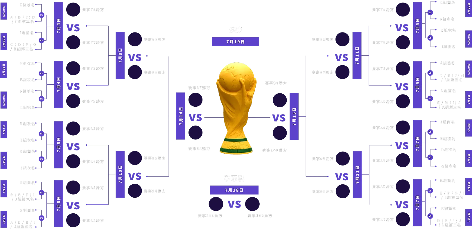 淘汰賽階段: 32強 → 16強 → 8強 → 4強 → 決賽